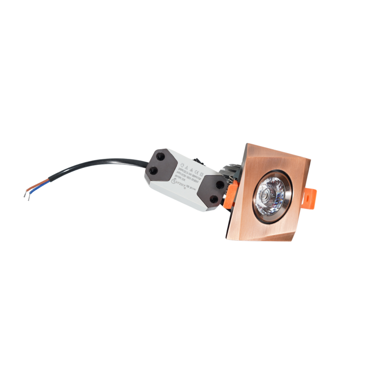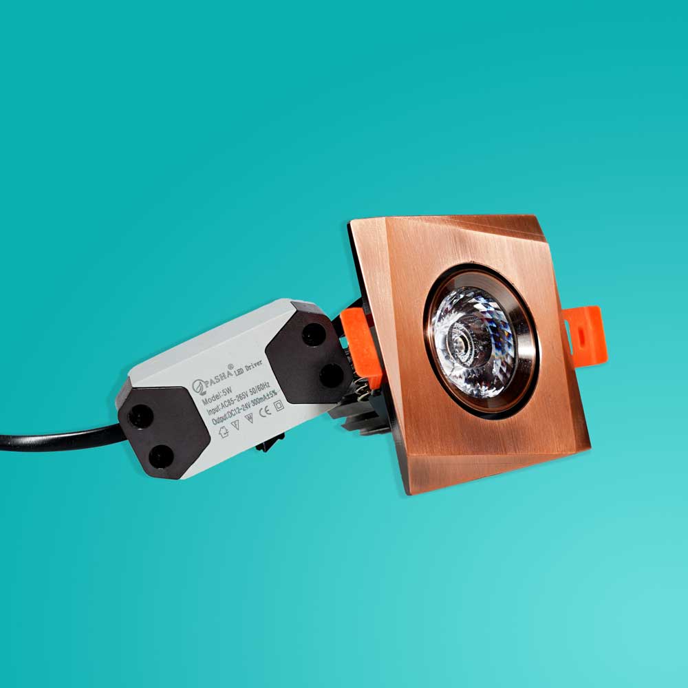 এটি একটি রিসেসড LED ডাউনলাইট, যার অর্থ এটি সিলিংয়ের ভিতরে ইনস্টল করা আছে, যেখানে কেবল আলো নির্গতকারী পৃষ্ঠ এবং একটি বেজেল দৃশ্যমান। উল্লেখযোগ্য শক্তি সাশ্রয়, শক্তিশালী,বিভিন্ন ওয়াটেজ (যেমন, 5W, 7W, 15W) এবং রঙের তাপমাত্রা (যেমন, ঠান্ডা সাদা, উষ্ণ সাদা) প্রদান করে।রিসেসড LED COB টিল্টেবল ডাউনলাইট/স্পটলাইট যার সাথে একটি বহিরাগত ড্রাইভার রয়েছে। এই লাইটগুলি সাধারণত বাড়ি, অফিস এবং বাণিজ্যিক স্থানগুলিতে অভ্যন্তরীণ সাধারণ বা অ্যাকসেন্ট আলোর জন্য ব্যবহৃত হয়। দিকনির্দেশনামূলক আলোর জন্য একটি সামঞ্জস্যযোগ্য/টিল্টেবল অভ্যন্তরীণ ল্যাম্প হেড সহ একটি গোলাকার, সোনালী ফিনিশ অ্যালুমিনিয়াম বডি এবং সিলিং কাটআউটে ইনস্টলেশনের জন্য কমলা স্প্রিং ক্লিপ রয়েছে। পৃথক সাদা উপাদান হল LED ড্রাইভার (পাওয়ার সাপ্লাই), যা LED চিপগুলিতে ভোল্টেজ এবং কারেন্ট পরিচালনা করে, যা প্রধান ফিক্সচারকে কম্প্যাক্ট থাকতে দেয়।৩ -ইঞ্চি) 7ওয়াট LED ড্রাইভার এবং একটি রিসেসড LED ডাউনলাইট, অ্যান্টি কালারের ।