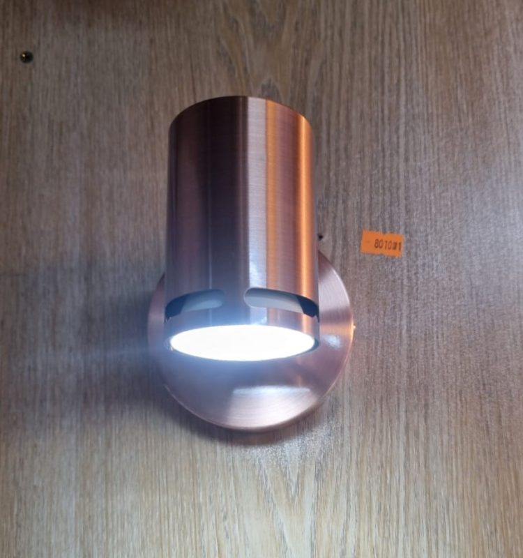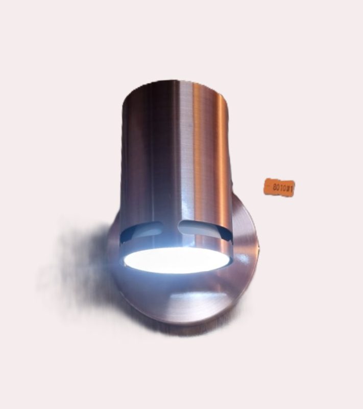 LED wall, Downlight cylindrical wall, and Ceiling-mounted with a modern, minimalist design. The fixture is cylindrical and has a brushed metal finish, likely stainless steel or aluminum. This type of light is designed to be mounted on a wall and emits light from both the top and bottom of the cylinder, creating a dual-directional lighting effect. The light has a sleek, contemporary style, often made of durable, corrosion-resistant metals like stainless steel or aluminum.
