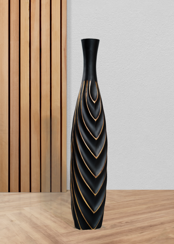 আলংকারিক কালো এবং বাদামী/ সোনালী মিশ্র ফাইবার টেক্সচার্ড ফুলদানি, যা মার্বেল-ইফেক্ট বা প্যাচওয়ার্ক নকশাযুক্ত । আলংকারিক কালো এবং বাদামী/ সোনালী মিশ্র ফাইবার টেক্সচার্ড ফুলদানি, যা মার্বেল-ইফেক্ট বা প্যাচওয়ার্ক নকশাযুক্ত ।সাধারণত সিরামিক বা পলিরেসিন এবং কখনও কখনও আমের কাঠের মতো টেকসই উপাদান দিয়ে তৈরি। ফিনিশটি প্রায়শই চকচকে বা পালিশ করা হয় এবং একটি ইলেক্ট্রোপ্লেটেড চেহারা থাকে।