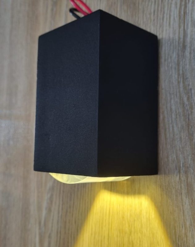 This light fixture is designed for wall mounting downward light, creating a distinct and decorative lighting effect. The fixture has a modern, minimalist, rectangular shape and a matte black finish